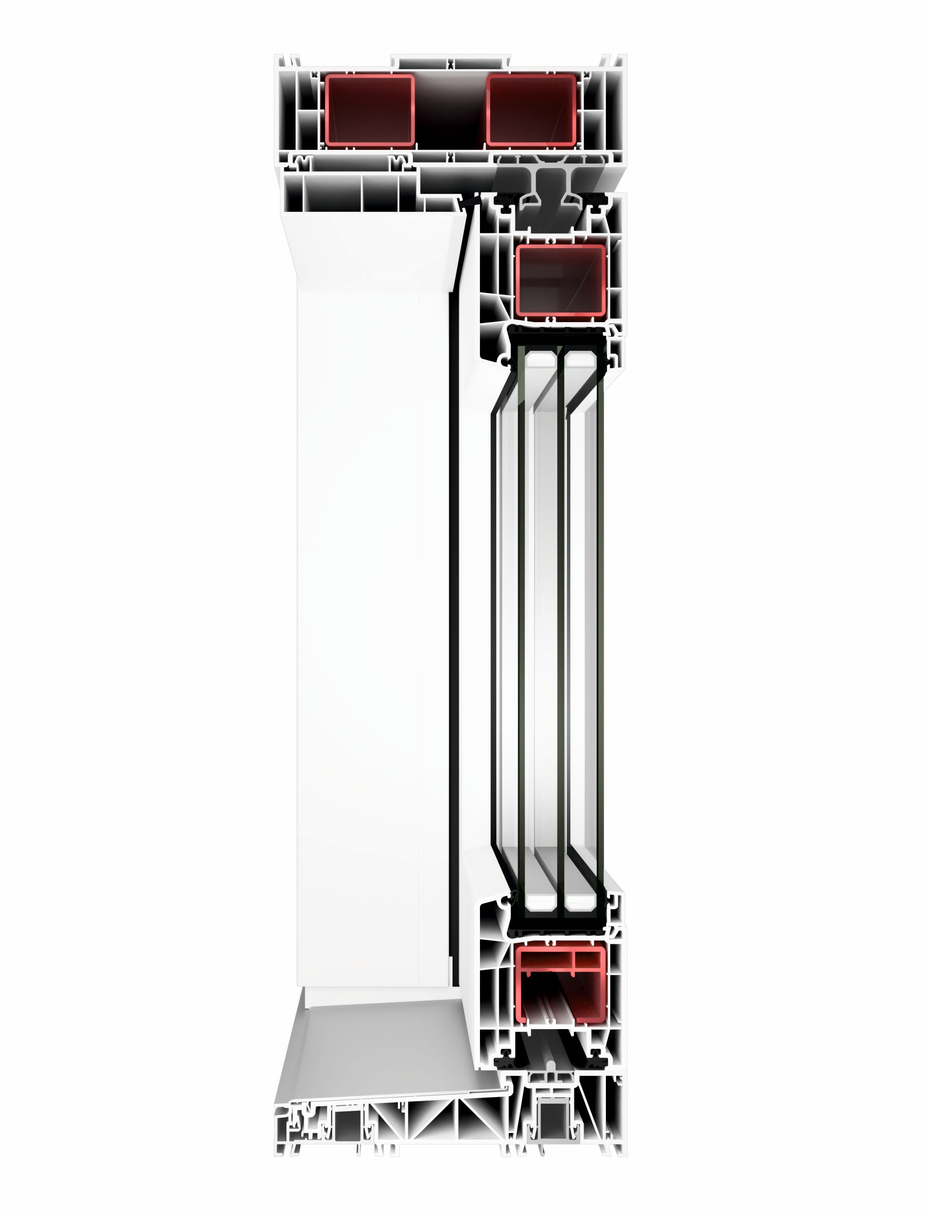 - Funktionalität und Bedienkomfort – Moderne Beschlagmechanismen machen das Verschieben schwerer Flügel einfach und bequem. Durch Drehen des Griffs nach unten wird der Flügel um einige Millimeter angehoben, wodurch die Dichtungen gelöst werden und die Flügel ohne den geringsten Widerstand frei verschoben werden können.